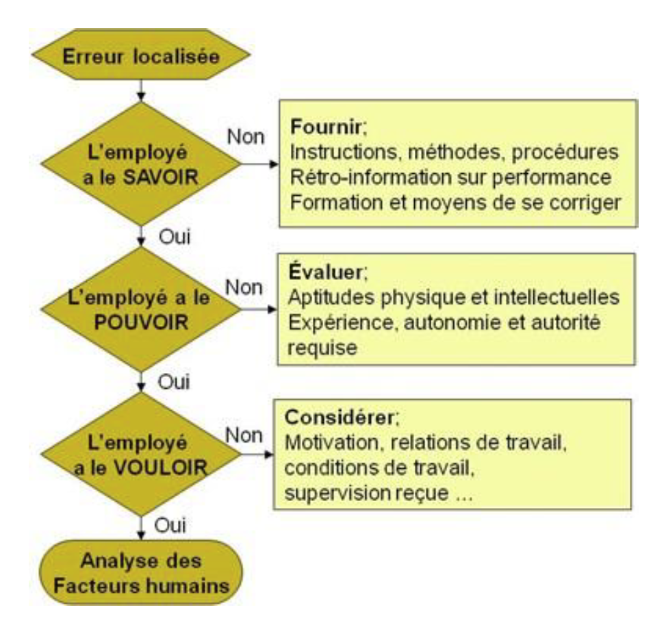 Quel que soit le niveau de responsabilisation, de formation ou de motivation des employés, des erreurs peuvent se produire, même si elles sont toutes évitables : oubli de suivre une étape, faire un mauvais ajustement, mal faire une tâche ou ne pas respecter les délais. Il faut alors analyser le pourquoi et régler la cause racine.