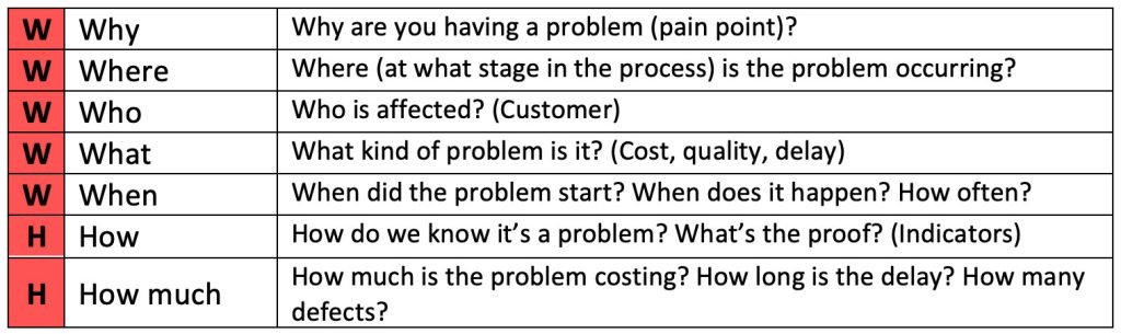 When defining a problem, people often start from the consequence: for instance, late delivery. That leads them to the problem: a lack of parts for assembly. From there, they find the cause: the sub-assembly team is struggling to keep up.